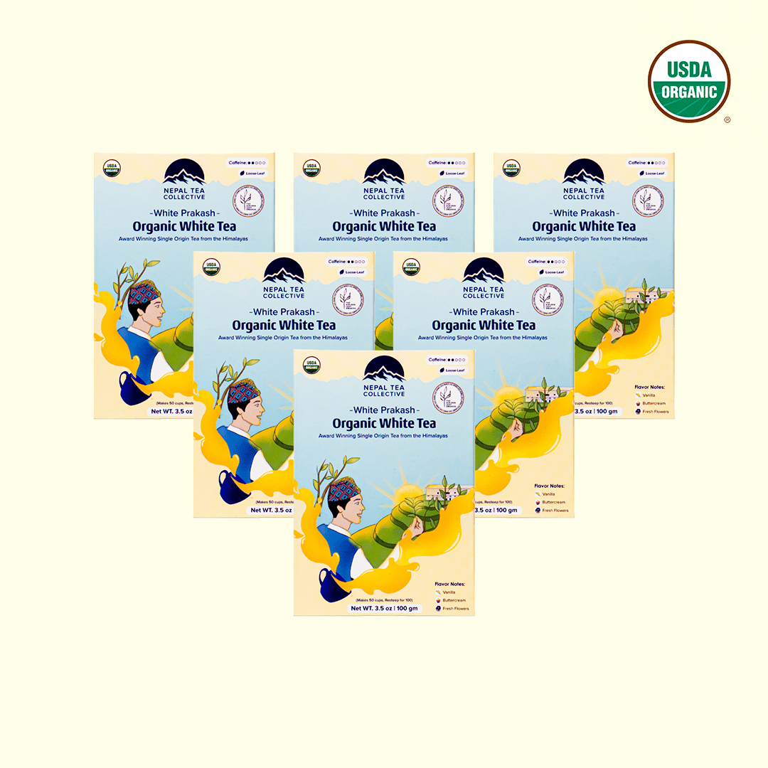 White Prakash is a smooth, flowery, premium organic bulk white tea with hints of vanilla, flavors of melting butter, muscatel, and spring blooms.